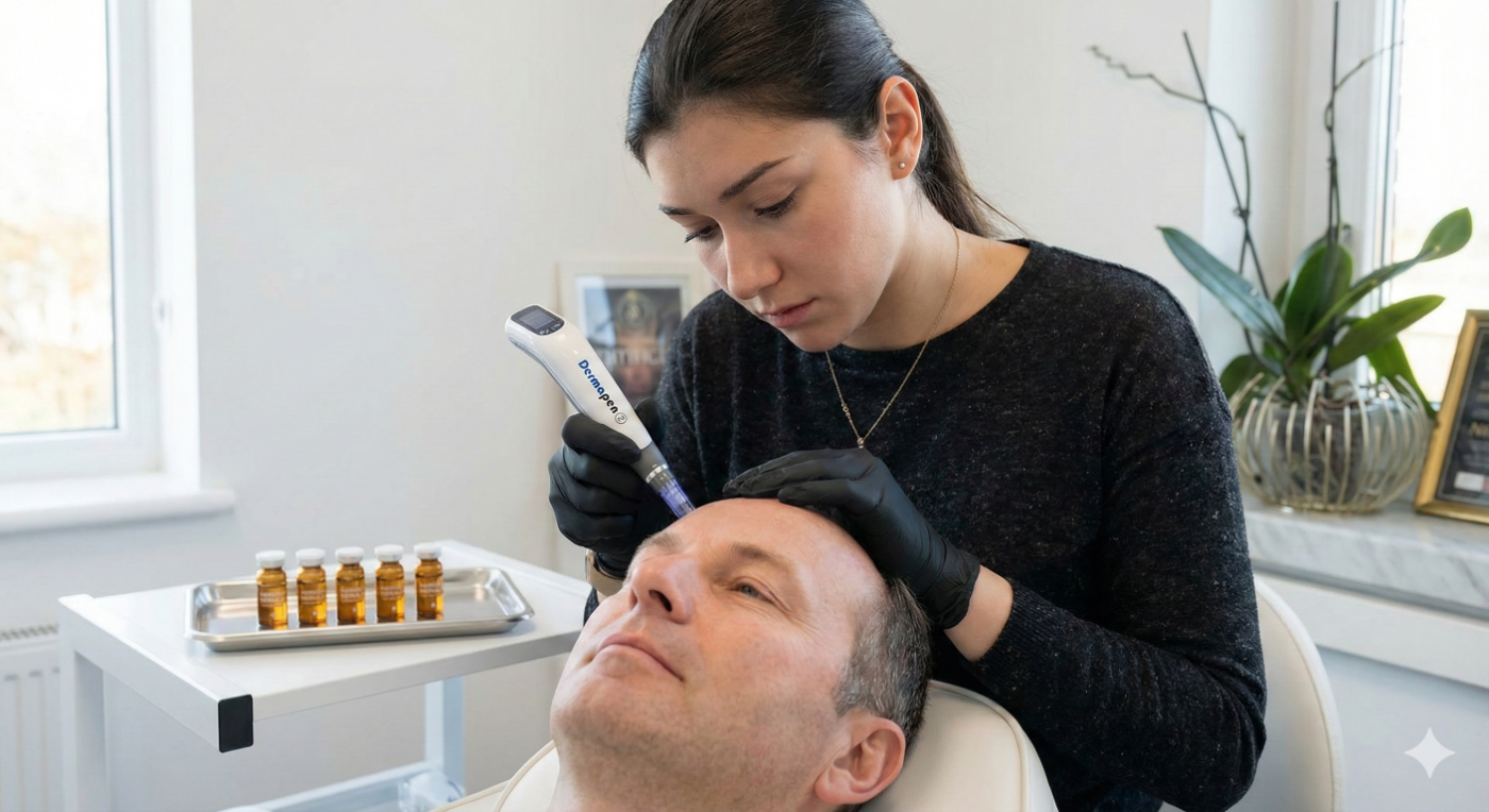 Zabiegi wspierające skórę głowy, hamujące wypadanie i stymulujące wzrost nowych włosów.